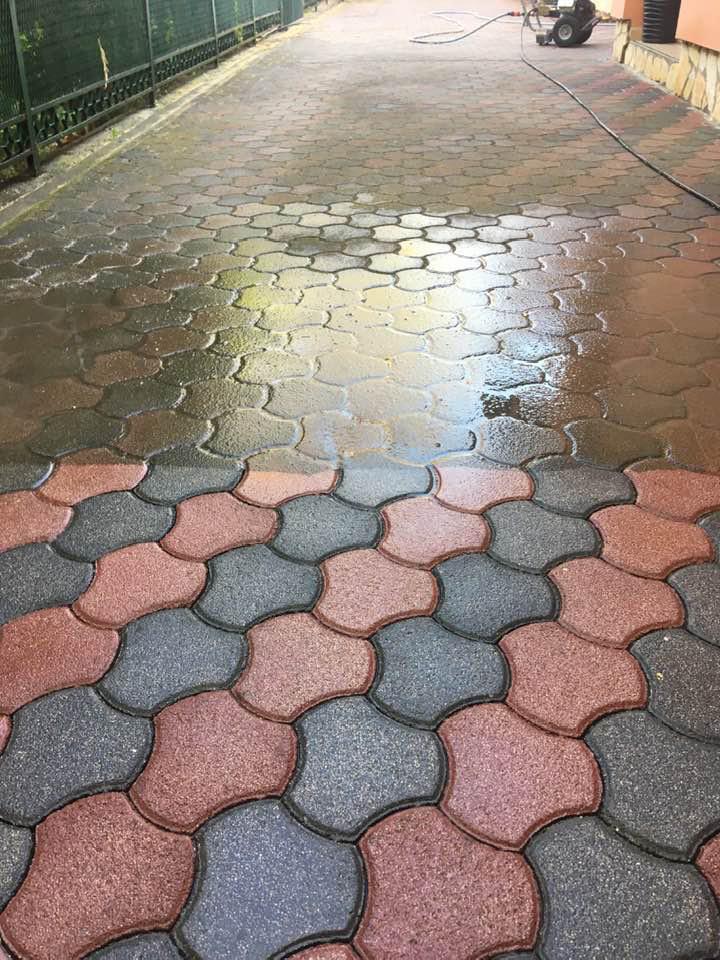 - Magasnyomású térkőmosás: Modern, magasnyomású tisztítóberendezéseinkkel hatékonyan eltávolítjuk a lerakódott szennyeződéseket, algát, mohát és egyéb nem kívánt rétegeket a térkövekről.